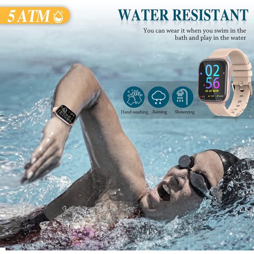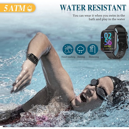 Smart Watches for Men Women,Fitness Tracker with Heart Rate Monitor Sport AMOLED Display Swimming Waterproof Watch for Android/ iOS/Phones, Black